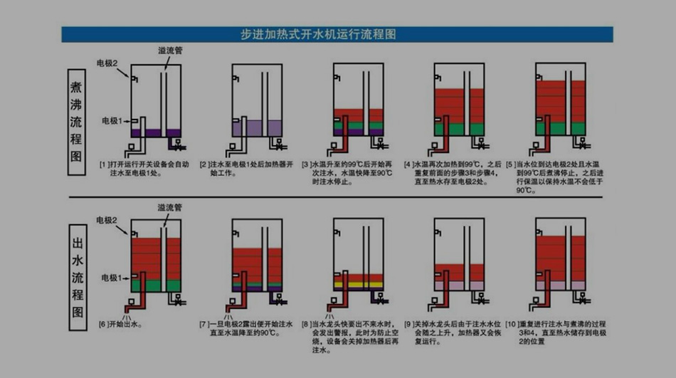 4. Only one layer of water is heated at a time, greatly reducing energy consumption;