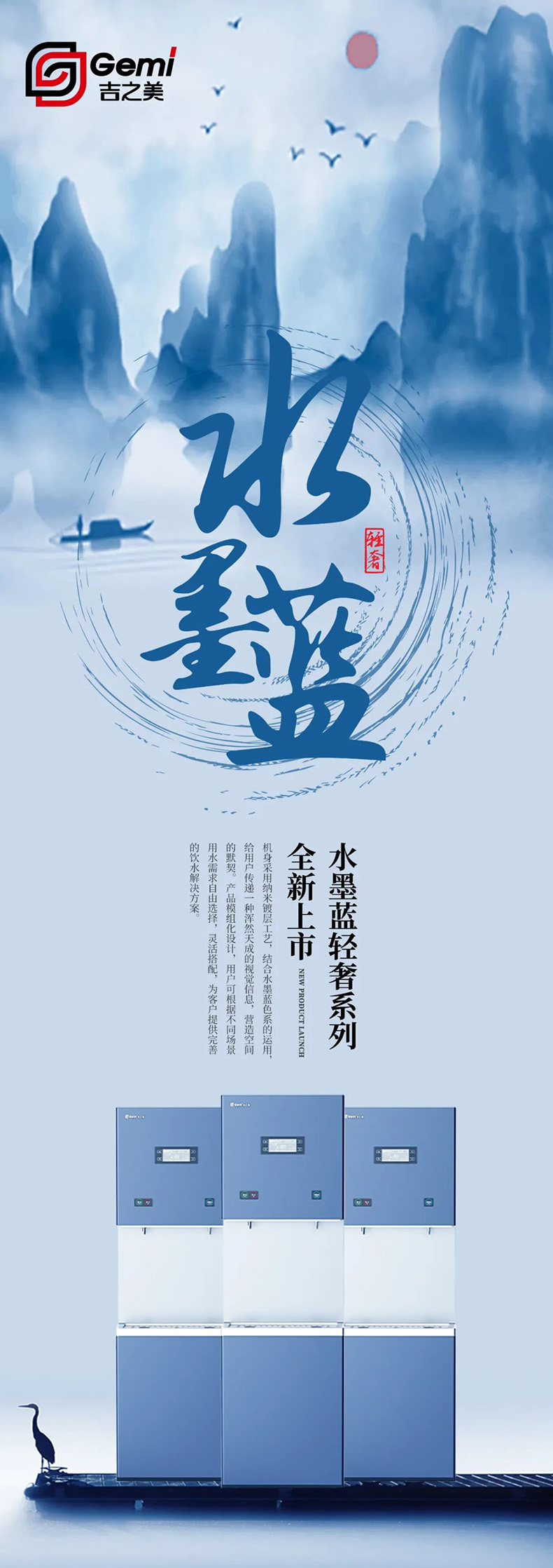 新品推荐 | “立如芝兰玉树,腹有锦绣乾坤 ”,吉之美水墨蓝轻奢系列之MY5云商务直饮机!