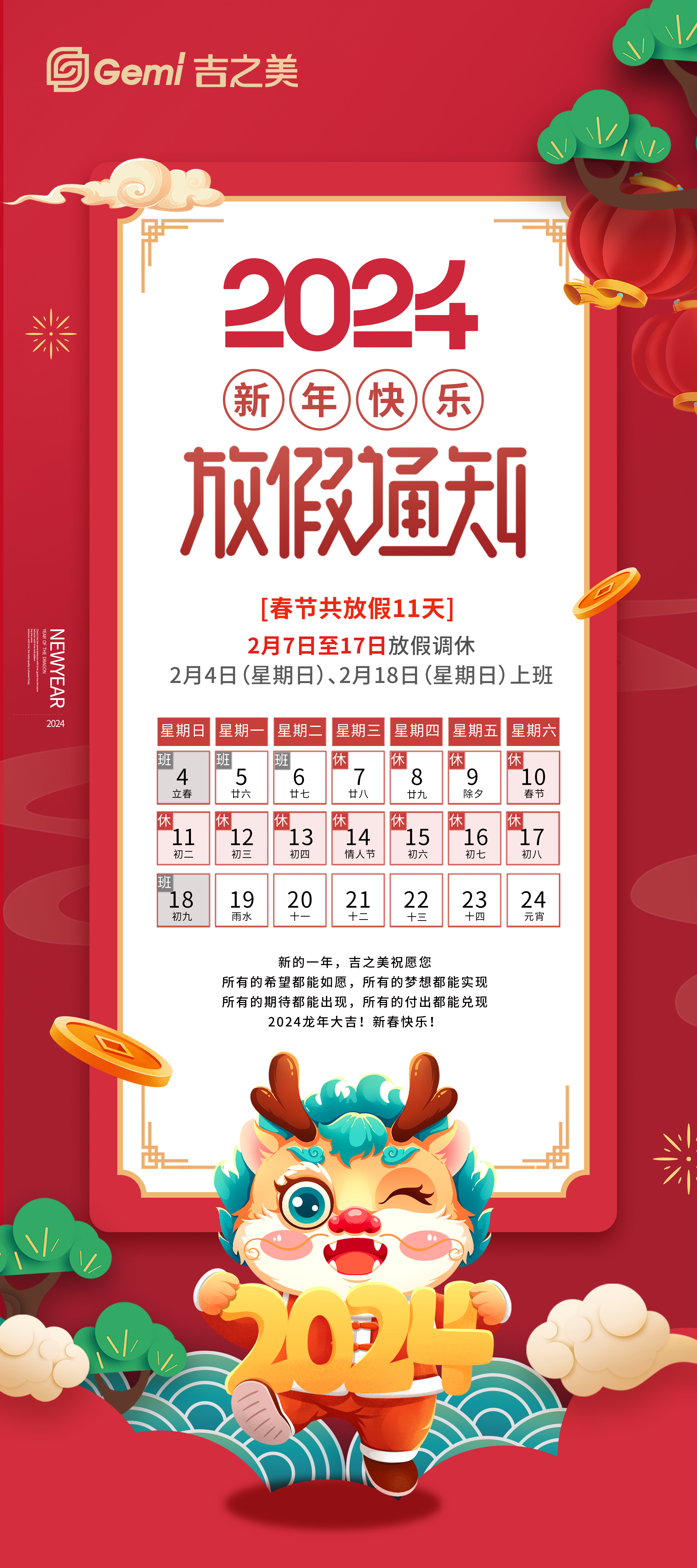 放假通知 | 吉之美2024年春节放假通知!