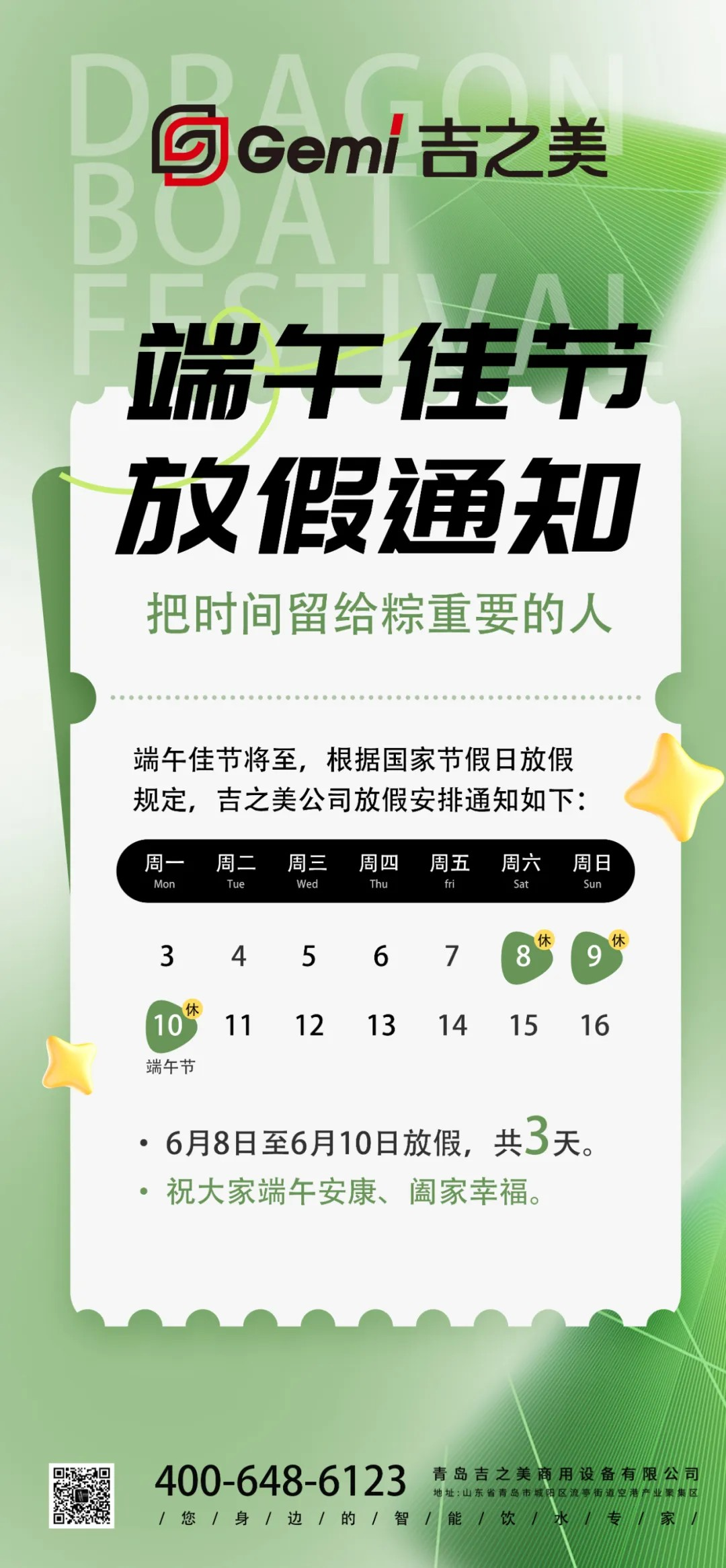 端午假期即将来临,根据《国务院办公厅关于2024年部分节假日安排的通知》,结合乐鱼网站实际情况,现将吉之美2024年端午节放假有关事项通知如下: