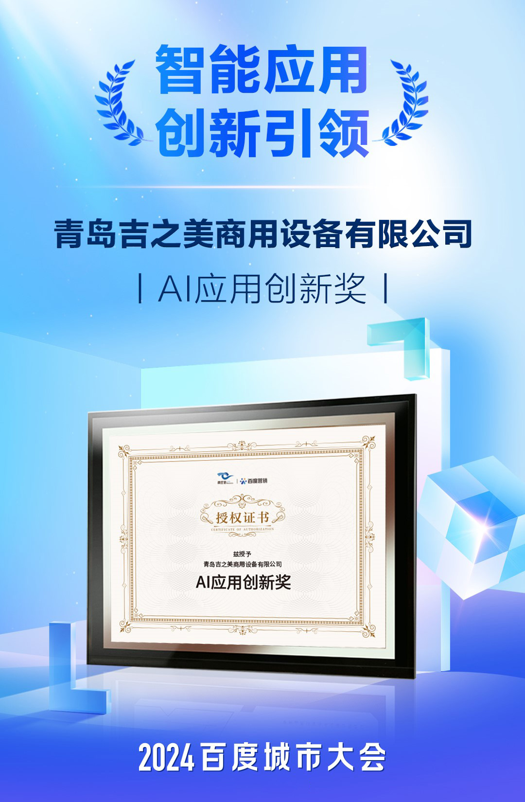 青岛吉之美荣获2024百度城市大会AI应用创新奖,引领饮水行业智能化变革!